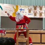 12/19(金)12月生まれのお友だちの誕生日会がありました。ホールに上がると誕生児さんが見当たらず!!「どこどこ?」ときょろきょろしていスるとテージの幕が開いて登場!少し恥ずかしそうにしながらも手を振っていました!
