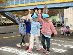 11月13日(金)にゆりぐみ(年長)が大芝公園交通ランドに行き、交通ルールを学びました。春から小学校1年生になる子どもたち。交通ルールが学べる映画を観たり、実際に横断歩道を歩いたりしながら信号の渡り方や標識のことなどもたくさん勉強しました。勉強の後はお楽しみのゴーカートに一人ずつ乗り、お弁当を食べ公園でたくさん遊んで帰りました。