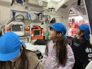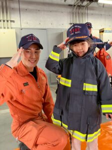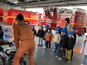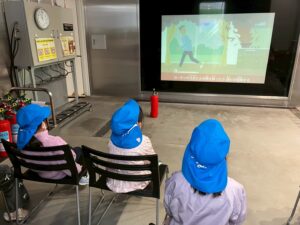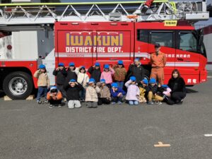 2/20(金)年長児はバスに乗って“いわくに消防防災センター”に行きました。映像を通して火事の恐ろしさを観たり、地震の揺れを感じたり、煙体験をしたりと実際に肌で感じていきました。また、消防士さんに消防署内を見学させてもらったり、救急車や消防車の仕組みを教えてもらったりと、たくさんの体験をさせてもらいました。
