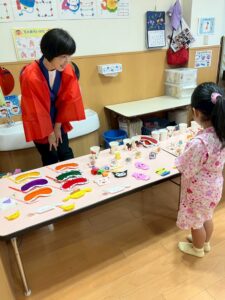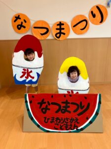 8/30(土)初の試みで保育参観として夏まつりを開催し、浴衣、甚平を着たりと、いつもと違う装いで楽しい夏まつりとなりました!!