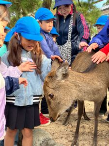 11/4(火)「わぁ~楽しみだな!!」とドキドキ・ワクワクの子どもたち!!天気にも恵まれて宮島遠足に行くことができました!!電車やフェリーに乗ったり、いろいろな生き物に触れたり、たくさんの人たちと挨拶を交わしたりと、とっても楽しく良い経験ができました!!