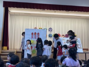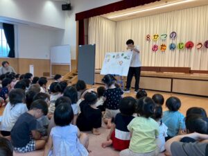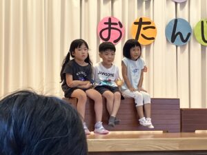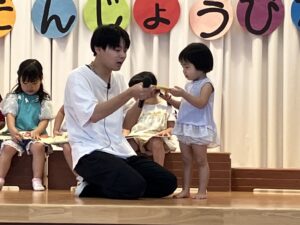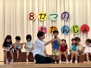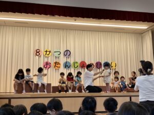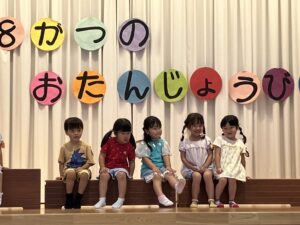 8/25(月)8月生まれのお友だちの誕生日会がありました。今か今かと誕生児は名前を呼ばれるのを待っていました♪
