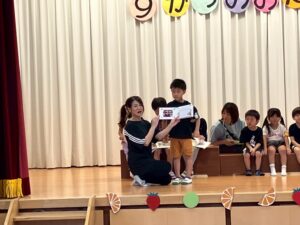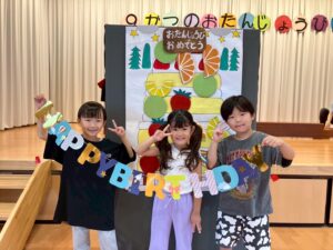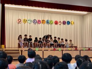 9/25(木)9月生まれのお友だちの誕生日会がありました。「今日は○○君が前に出るね!」と子どもたちのワクワクな会話が聞こえてきます!!「おめでとう!」とお祝いしてもらい大喜びでした♪