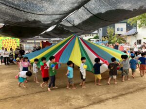 10月、迎えた運動会!猛暑が続く中、取り組み練習が思うようにいかないことも多かったものの、当日はやる気満々の子どもたちばかり!年少組にとっては初めての運動会。年長組にとっては、こども園での最後の運動会となりました。ドキドキ、ソワソワする中で始まった開会式も一つ一つの競技を終えていくうちにキラキラした表情に変わり、終わった後は達成感でいっぱいのこどもたちでした✨よくがんばりました!!